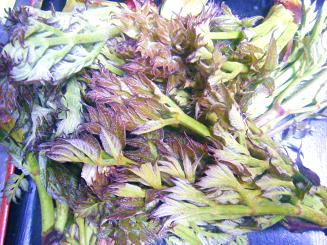 水のなかに、色粉の赤少量加え、道明寺粉を入れて、水分が無くなるまで練り上げて、先ほどの鯛を中に、入れ桜の葉で、包み役10分ほど蒸し器に、盛り付けて、銀餡をかけて提供する。